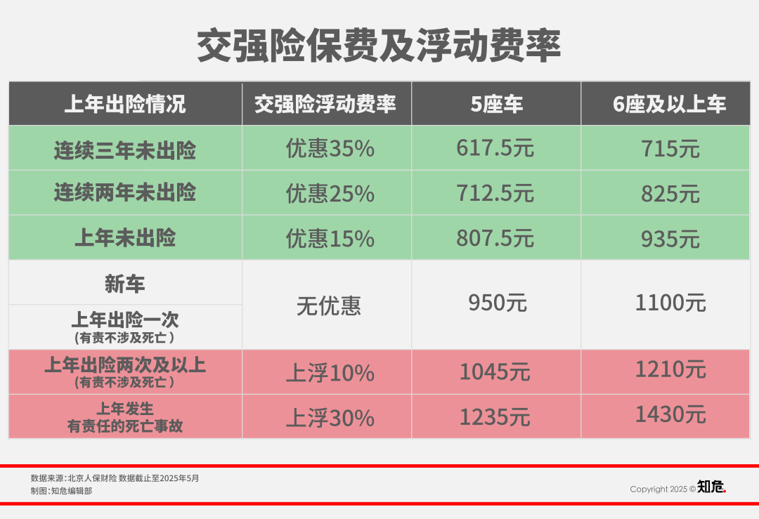 基础保费对于同一类型车型具有全国统一性。例如,家庭自用 6 座以下汽车的基础保费为 950 元,而 6 座以上的汽车为 1100 元。然而,形成交强险最终保费的区别仍然取决于浮动费率,即承保车辆是否曾经发生过道路交通事故,是否存在交通安全违法行为记录。