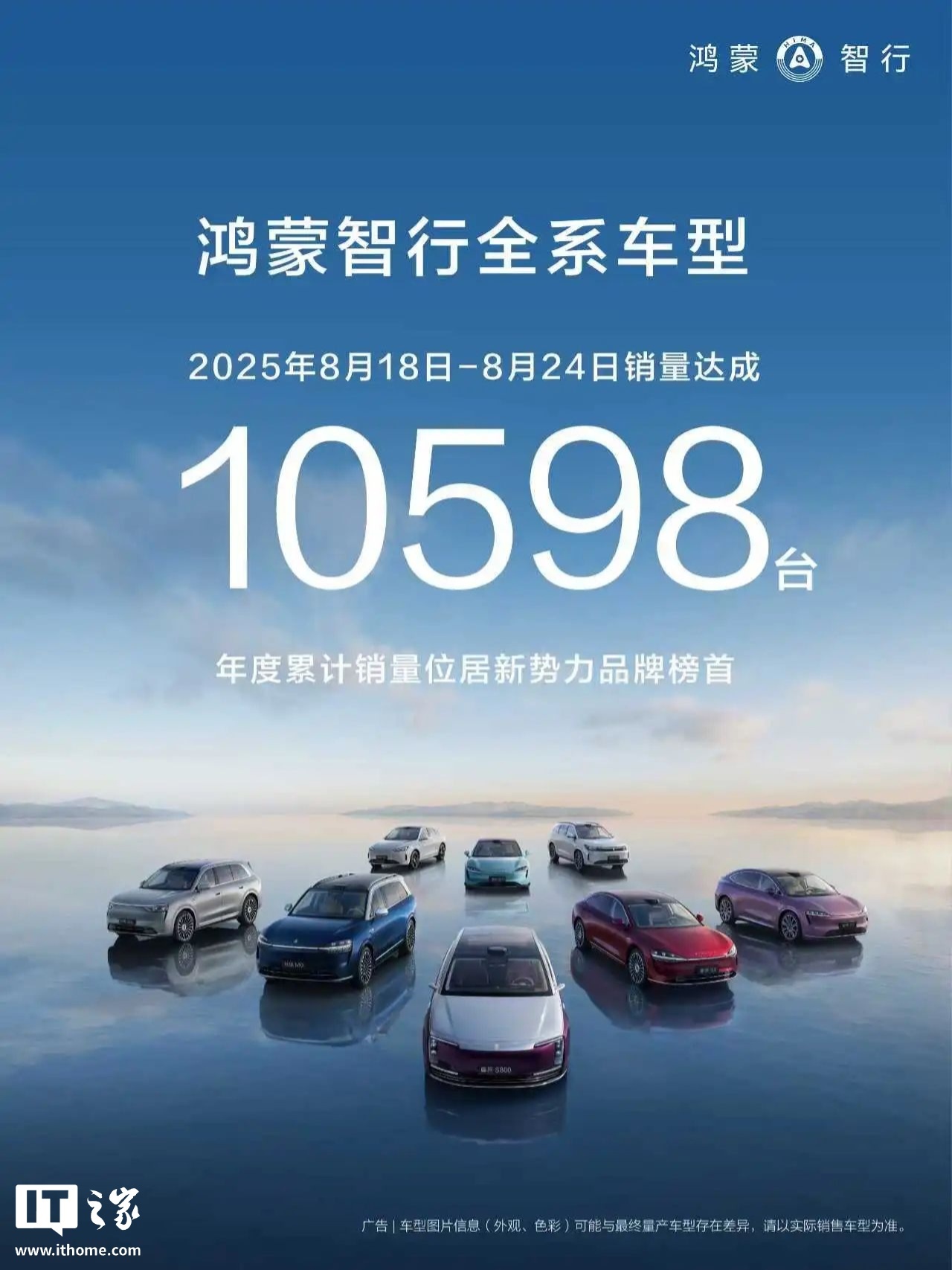鸿蒙智行官方于8月27日宣布,2025年8月18日-24日(今年第34周)全系车型销量达10598台,年度累计销量继续稳居新势力品牌榜首。博主@我鸿也分享了喜讯,称:“问界双王牌持续霸榜,问界M9五十万级销冠、问界M8四十万级销冠。”