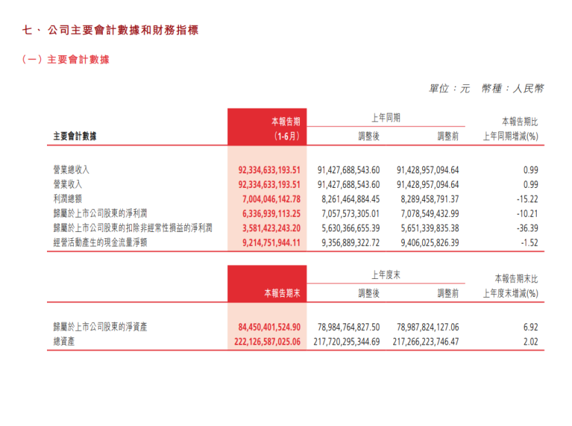 报告期内,长城汽车实现了923.35亿元的营业总收入,较去年同期的914.28亿元增长0.99%,基本保持稳定。然而,在利润方面,归属于上市公司股东的净利润为63.37亿元,相较于去年同期的70.58亿元下降了10.21%,出现微弱的回落。