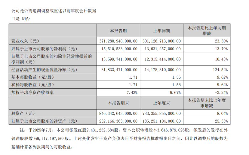 经营活动产生的现金流量净额约为318.33亿元,相较于去年同期的141.78亿元,大幅增长了124.52%,这表明公司主营业务的「造血」能力非常强健,为后续的研发投入和产能扩张提供了充足的资金支持。