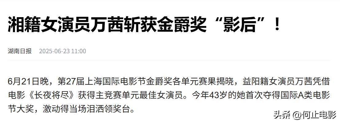 谁也没想到,演技出众的万茜,职业生涯中首次摘得高含金量的影后奖杯,竟然是在2025年拿到的。