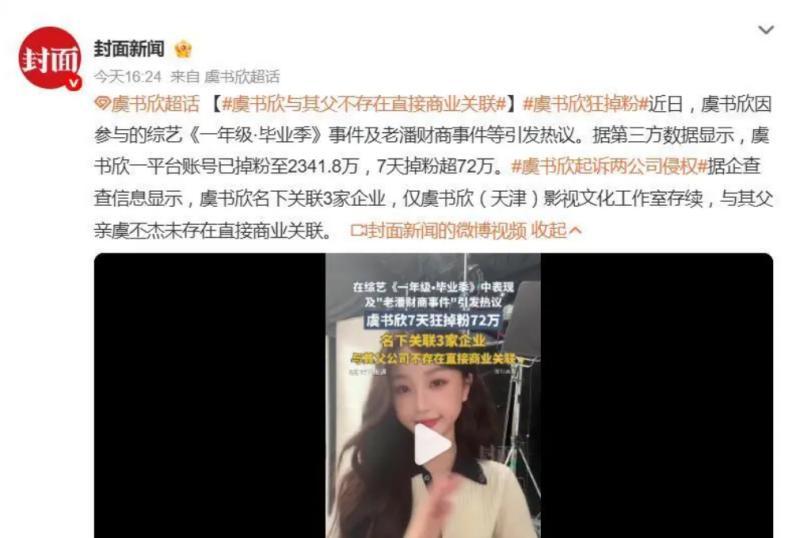 事情的发酵至今,已经对虞书欣产生了不小的影响。