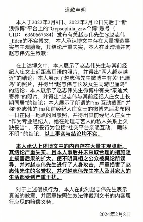 尽管赵志伟早已取得法院的胜诉判决,拿出了法院的胜诉证明,那些污蔑他的虞书欣拥趸们也终于对他进行了道歉。