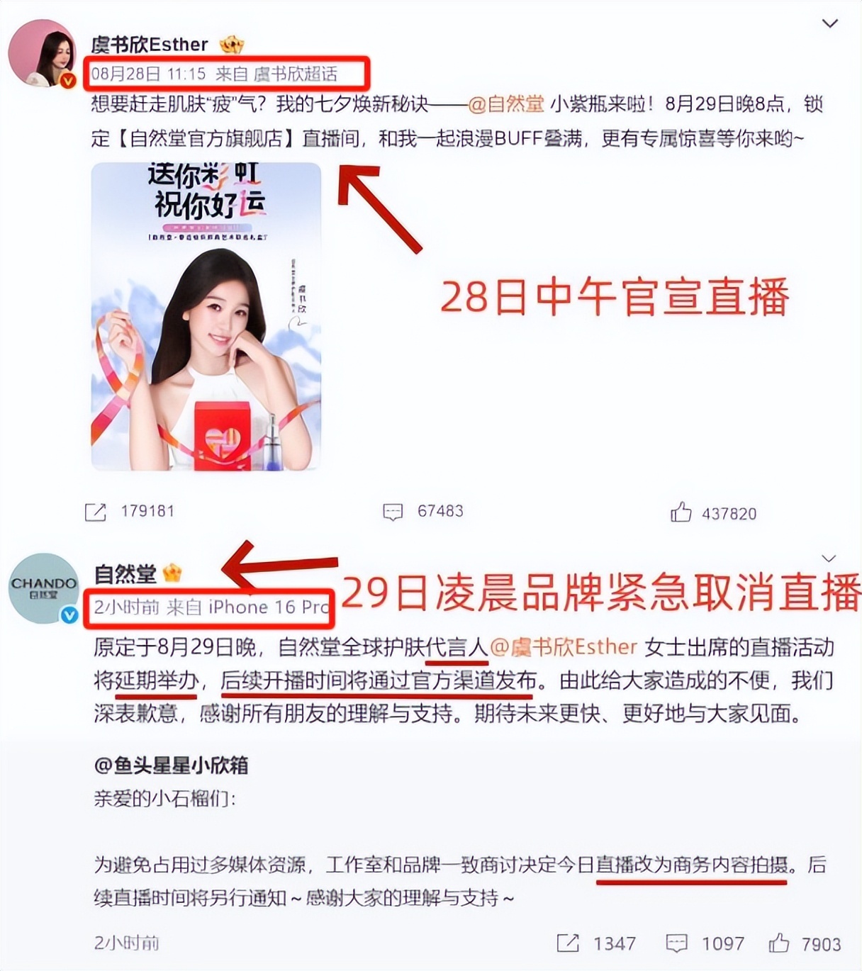 原本预定的代言品牌直播带货發出预告后,遭遇了大量网友的强烈反响,最后直播被无限期延期。
