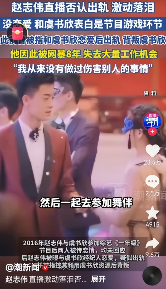 然而,现在赵志伟在直播中表示,当年的所谓告白不过是节目组安排的舞会挑选搭档的活动。