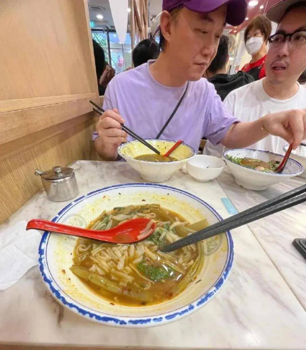 在品尝美食的过程中,陈奕迅不仅吃得津津有味,还好奇地尝了尝朋友碗里的菜,这个举动把网友们都逗乐了,也让人们觉得陈奕迅是一个热爱生活、对美食充满好奇和爱好的人。