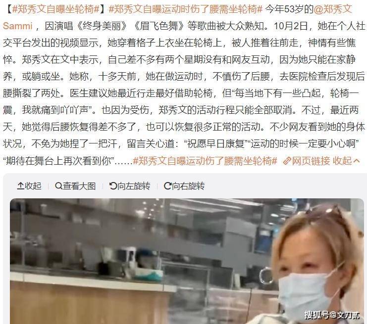 10月2日,她突然发布了一条坐轮椅的视频,声称因运动过度激烈导致严重的腰部受伤。