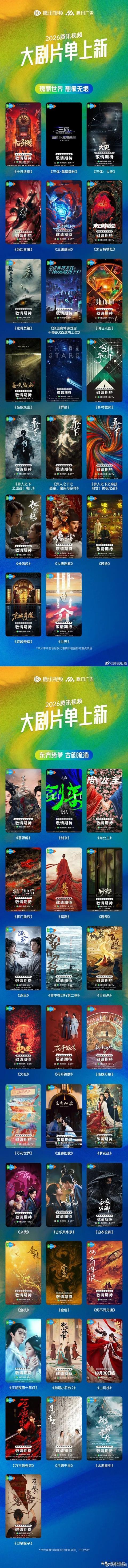 此外,《慕胥辞》《莫离》《梦花廷》等古装剧阵容强大,充分展现了腾讯2026年欲“霸屏”古装赛道的坚定信心。