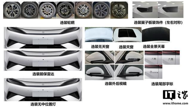 该车可选装多种轮毂、天窗、全景天幕,还可选装“大秦”和“秦 Ultra”的独特尾标。