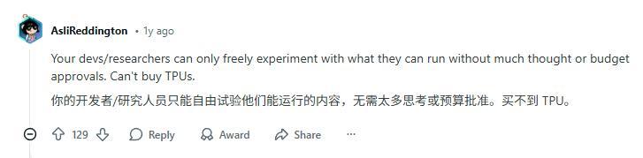 即使强兼了 PyTorch,许多底层的优化和自定义算子仍然需要在 TPU 上重新调试。专门为 TPU 设计的 JAX 语言也提高了人才招聘的门槛。