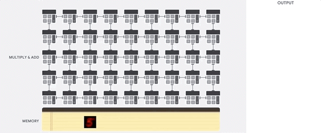 随着每个数据的计算一旦开始,它们将在密集排列的计算单元之间进行传递,而不允许它们在未完成计算前回存储在单元中,这样就可以减少频繁的读写操作。