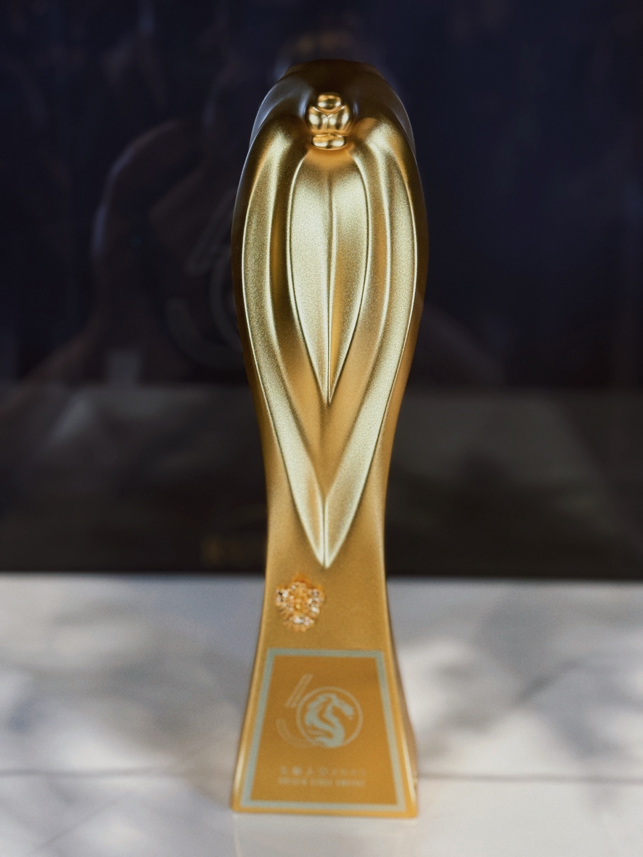 当晚另一个亮点,是向500多位受邀嘉宾首次公开发布了金狮大赏奖座。奖座由新加坡本土品牌RISIS(丽西施)设计与制作。这座首届《金狮大赏》奖杯赞扬了亚太区电影的杰出成就,体现了新加坡敢于梦想、不断创新和富有远见的精神。奖杯的全身采用哑光24K镀金装饰,流畅的线条兼具力量与优雅,精致的狮子徽章象征着魄力、领导才能与诚信。奖杯挺拔上升至优雅的顶点,奏响敢于梦想、不断重塑视角的电影创作旅程。精致的《卓锦万代兰》点缀其中,体现了新加坡国花的坚韧美丽,赞颂那些以作品启发并打动全球观众的杰出电影创作者。