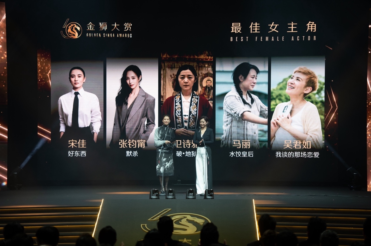 金狮大赏评审袁咏仪、郝蕾共同颁发最佳女主角奖项。