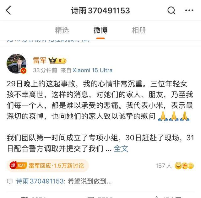 小米SU7遇难者家属回应雷军表态:希望说到做到