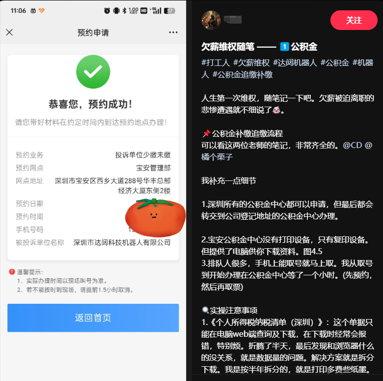 深圳公司员工发帖记录公积金补缴追缴流程,称自己欠薪被迫离职。