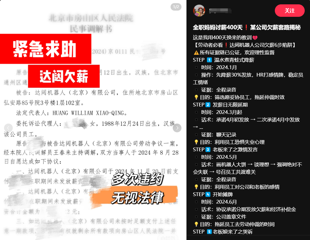 在小红书上,达闼机器人北京公司员工发文控诉其欠薪,称早在去年1月就遭遇降薪,后来发薪无限延期,为此已经讨薪400天。