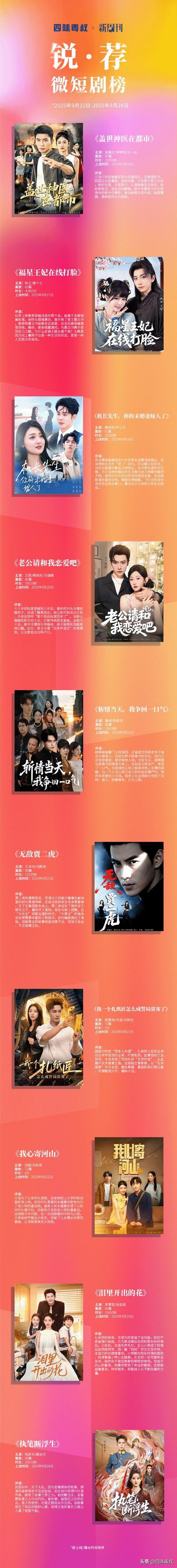 本次「锐·荐微短剧榜」周榜第32期(2025年9月22日——2025年9月28日)