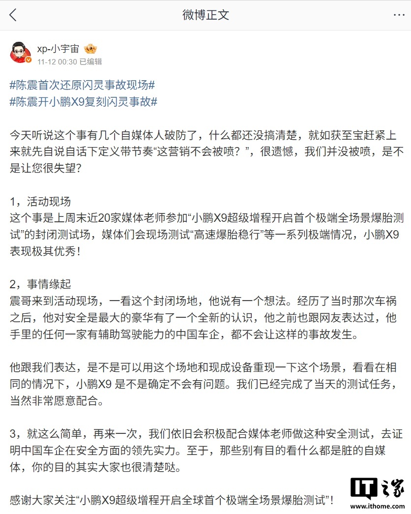 小鹏汽车员工@xp-小宇宙11月12日凌晨发文回应称: