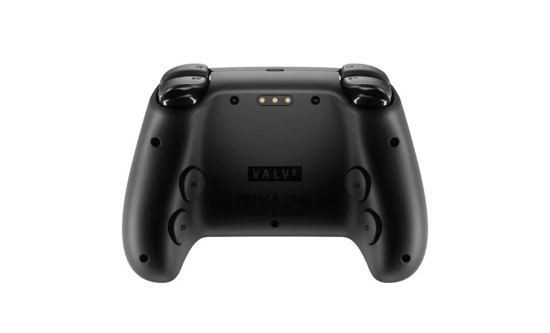 新发布的Steam Controller手柄,如图所示,配备双摇杆和与Steam Deck相似的触摸屏,背部新增4个按键,支持陀螺仪体感控制。