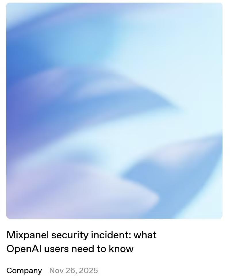 OpenAI:第三方Mixpanel发生网安事件,部分API用户数据可能泄露