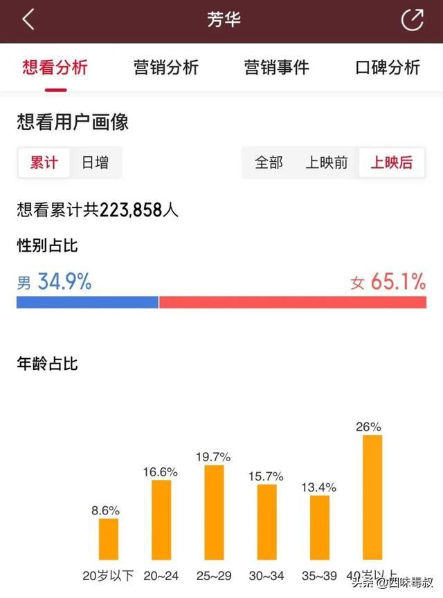 数据揭晓真相,《花样年华》重映,想看用户画像中,20-24岁观众占35.3%,成为最大受众群体,打破了传统的刻板印象,40岁以上仅占16.7%,证明了老片不再仅仅是中老年回忆杀。